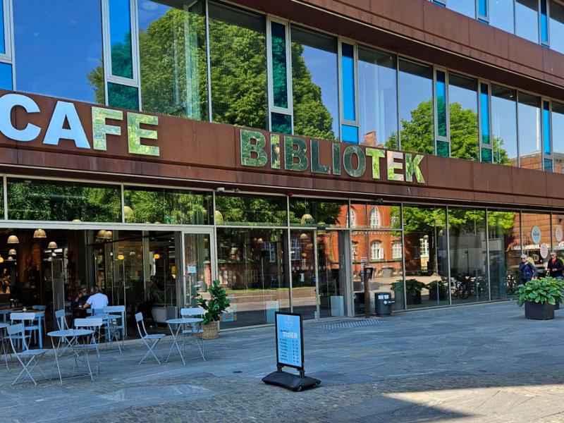 I Brøndums cafe, der er tilknyttet biblioteket, kan du købe både mad og drikke.