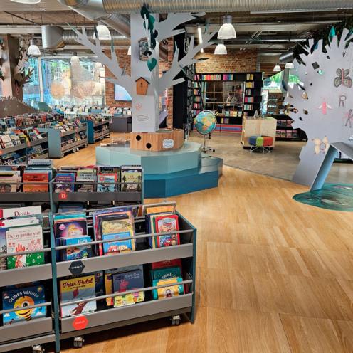 Derudover har vi spredt rundt på bibliotekets to etager også lænestole og sofaer, der kalder på hygge, fordybelse og afslapning.