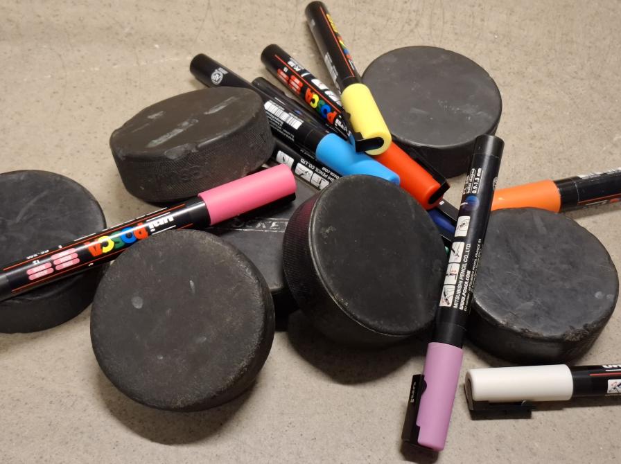 I anledning af VM i ishockey kan du denne søndag dekorere din helt egen ishockey-puck.