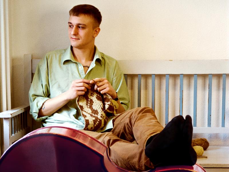 Siden 2022 har den prisbelønnede bassist, komponist og strikkedesigner Albert Reinholdt Østergaard optrådt landet rundt med sin musikalske strikkefortælling Bær Dine Fejl, og nu kommer han til Herning.