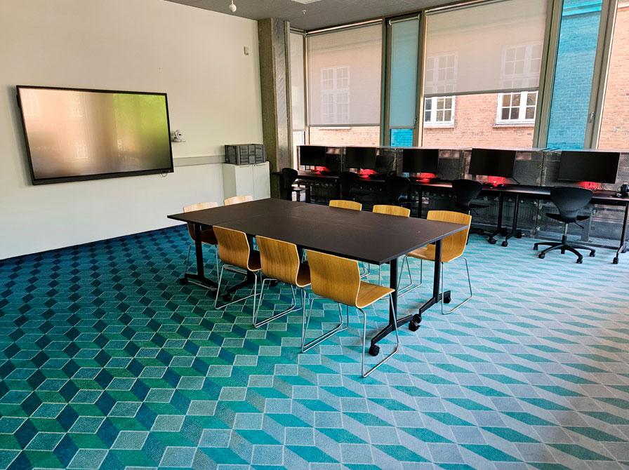 - Et it-undervisningslokale med en fast bordopstilling med 15 pc-arbejdspladser